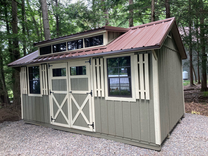 Looking for something a little more custom? Catskill shed company offers a variety of different options including steel sheds, greenhouses, board and batten sheds, and more! Check out our photo album for more photos or follow us on Facebook! For some of our more common customs, see below!