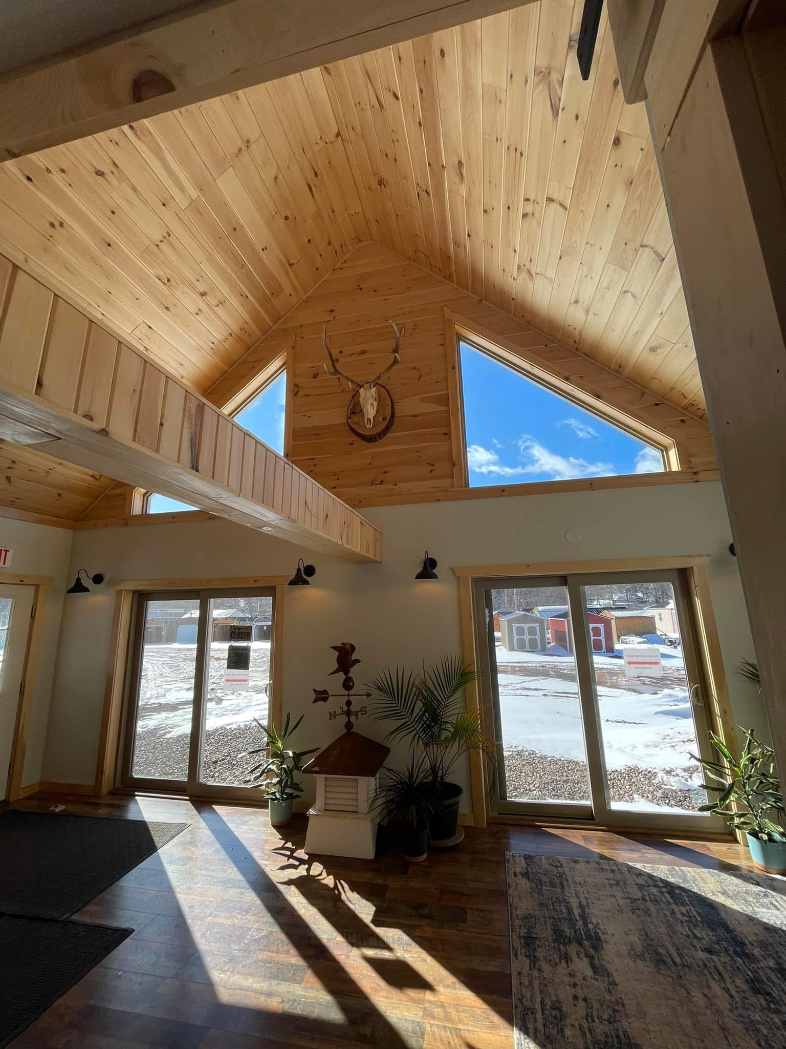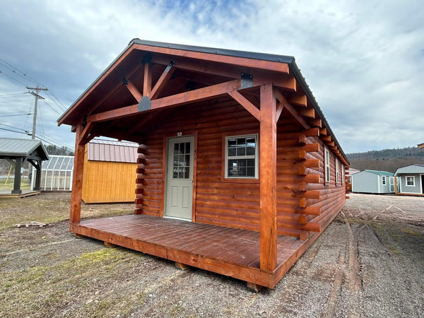 These cabin's feature pre-cut tongue and groove pine logs, foam weather sealer, 4"x6" timber trusses, 2"x8" tongue and groove roof decking, rigid foam roof insulation, double pane vinyl windows, fiberglass entry door, and your choice of stain! Pricing attached at the bottom! Reach out to inquire about these today!