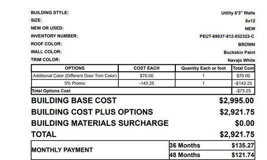 10x12 Utility Economy 69833Regular price $3,880.00 USDRegular priceUnit price / per$3,745.00 USDSale price $3,880.00 USD