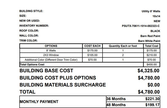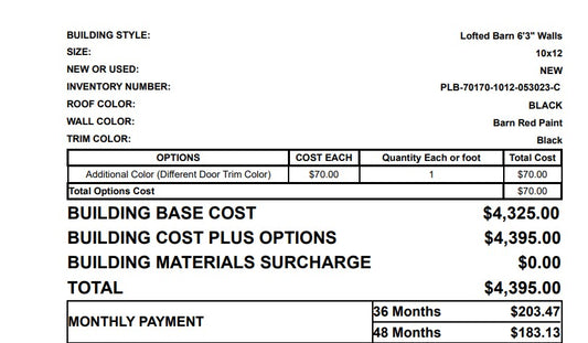 10x12 lofted barn 70170Regular price $4,553.00 USDRegular priceUnit price / per$4,395.00 USDSale price $4,553.00 USD