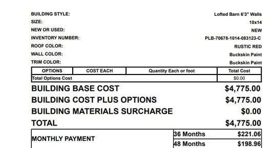 10x12 lofted barn 70324Regular price $4,553.00 USDRegular priceUnit price / per$4,395.00 USDSale price $4,553.00 USD