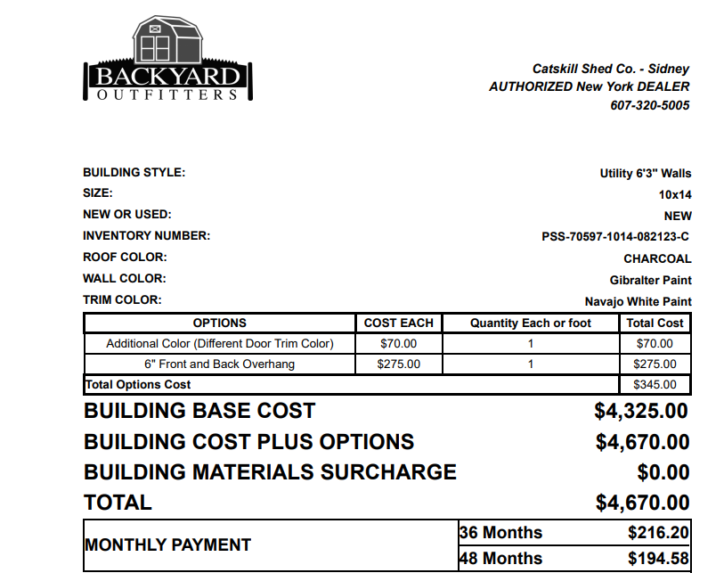 10x14 single sloped utility shed painted gibraltor with beige trim and 29 gauge charcoal metal roof! This one comes with the following options: