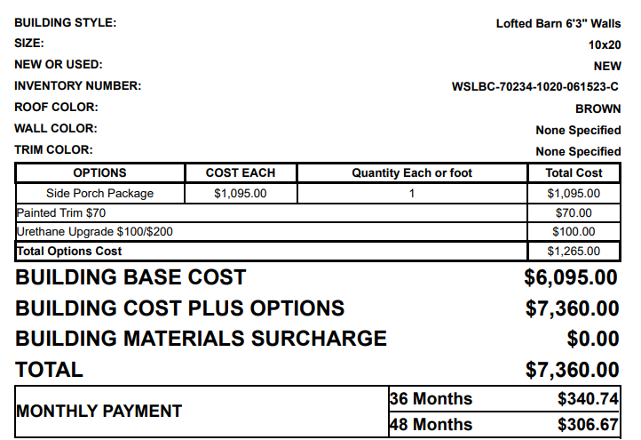 10x20 Lofted Barn with Chestnut Brown Siding, White Trim, and a Brown Metal Roof. This one comes with the following options: