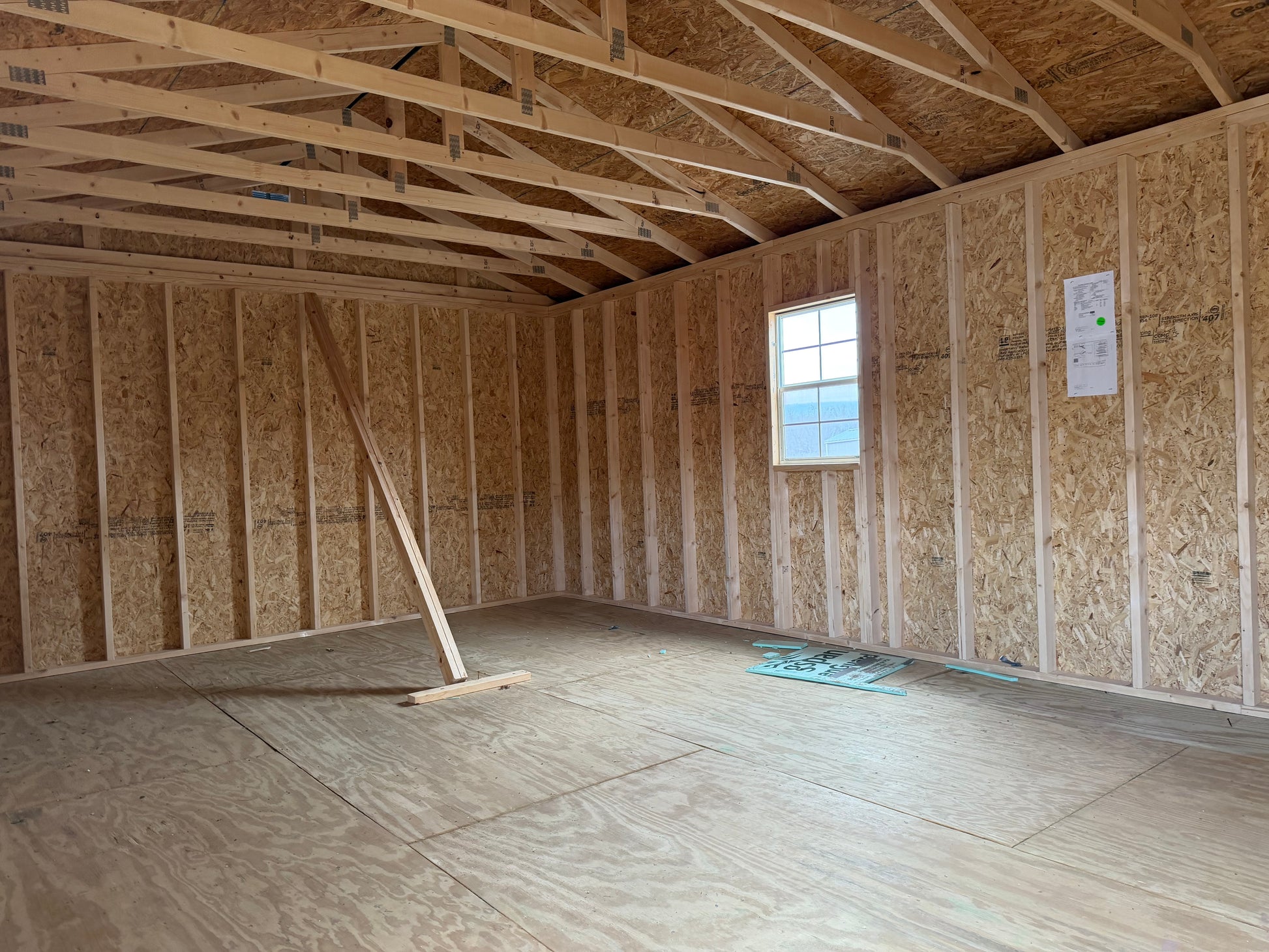 This is a used building- as is no warranty. Rent to own options are available at a 36 or 48 month term.