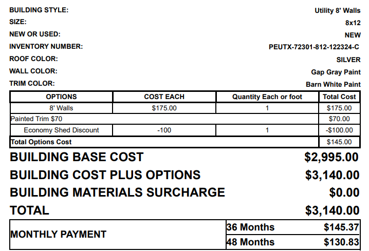 8x12 Economy Shed 72301